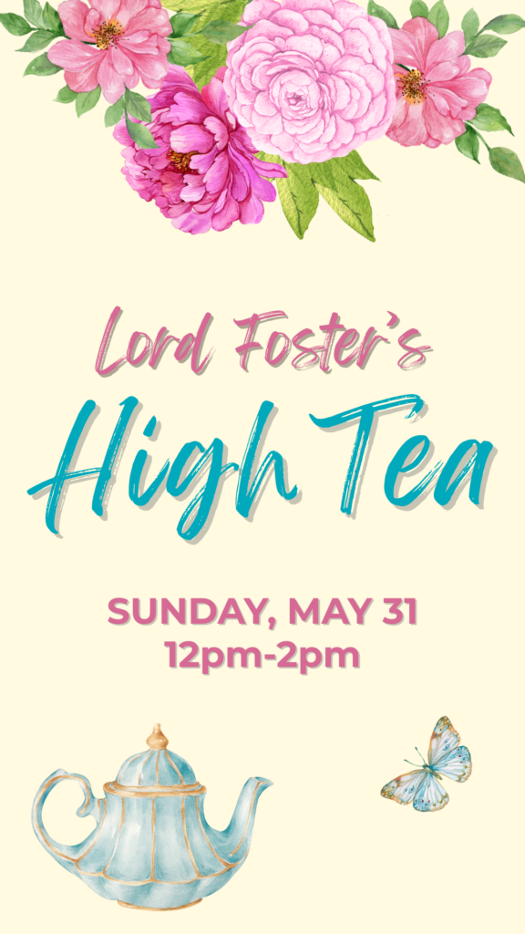 Join us on Sunday, May 31 for Lord Foster’s High Tea. A glass of wine will welcome your arrival at Vineland Estates Winery for this Foster Festival Fundraiser. Enjoy delightful conversations, a delectable assortment of sweet and savory treats, and a selection of teas. The picturesque Vineland Estates is the perfect spot to enjoy a cup of tea on a Sunday afternoon.