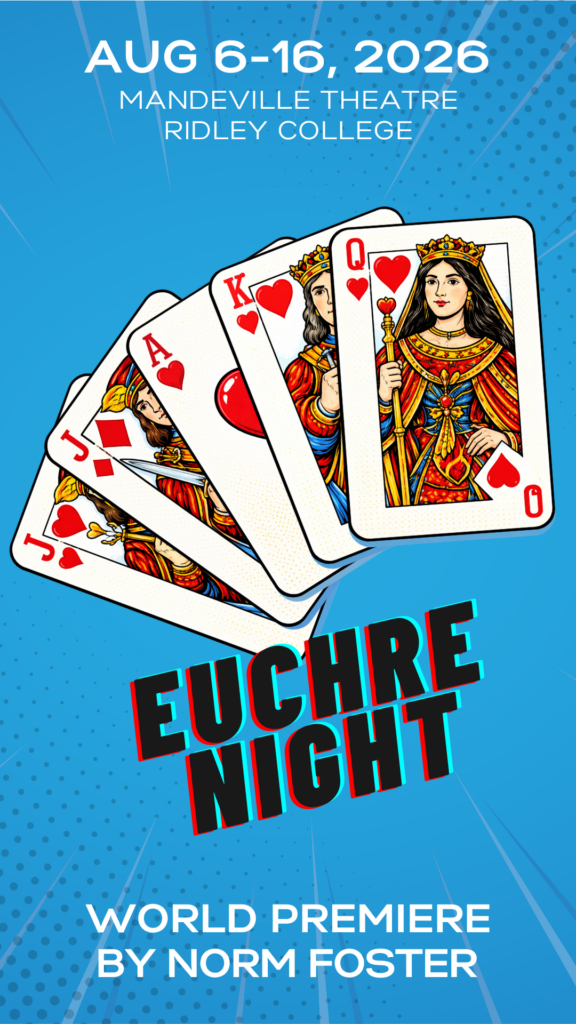 For 32 years Ruby, Deb, Kelly, and Grace have been playing Euchre every week. Over the years they’ve got married, had children, had grandchildren, and lost spouses. Now a new romance threatens to come between them as one reaches for happiness and the others can’t let go. Can friendship survive the hand life deals out or do the changes that family, work, and getting older bring trump even the most enduring of bonds? Euchre Night stacks a deck of laughter and poignancy in this brand new comedy about a special circle of friends.